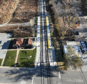 Elements of the project included approximately two miles of completely new right-of-way in Michigan City, platform reconfigurations at five stations, construction of 1,475 additional parking spaces, a new overhead catenary power system, and reconstruction of 22 at-grade crossings and 20 culverts. The Project greatly improved safety along the entire alignment, especially in Michigan City where the new alignment removed the street-running track, eliminated 13 grade crossings, and provided a safer environment for passengers boarding trains.